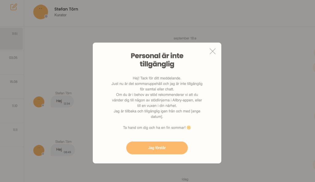 - Om något oroväckande framkommer i chatten kan Allbry vid behov identifiera eleven i samråd med skolan.