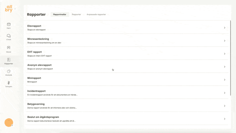 När du fyller i en rapport (t.ex. incidentrapport, EHT-rapport eller custom report) får du en fråga: