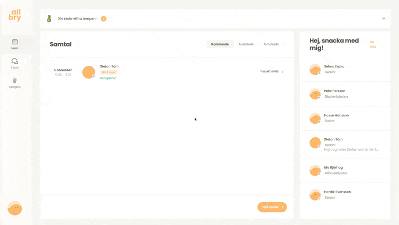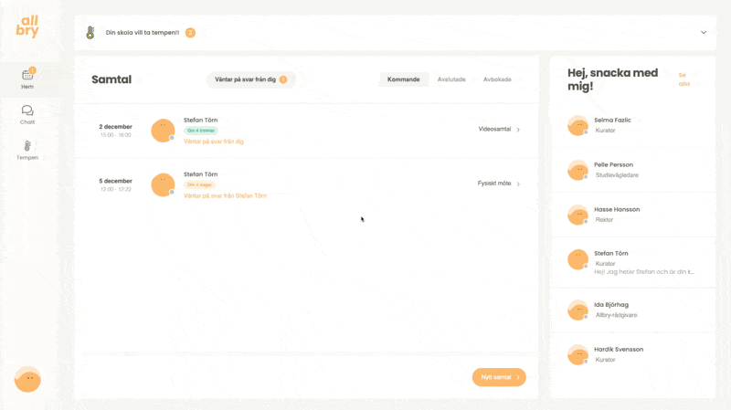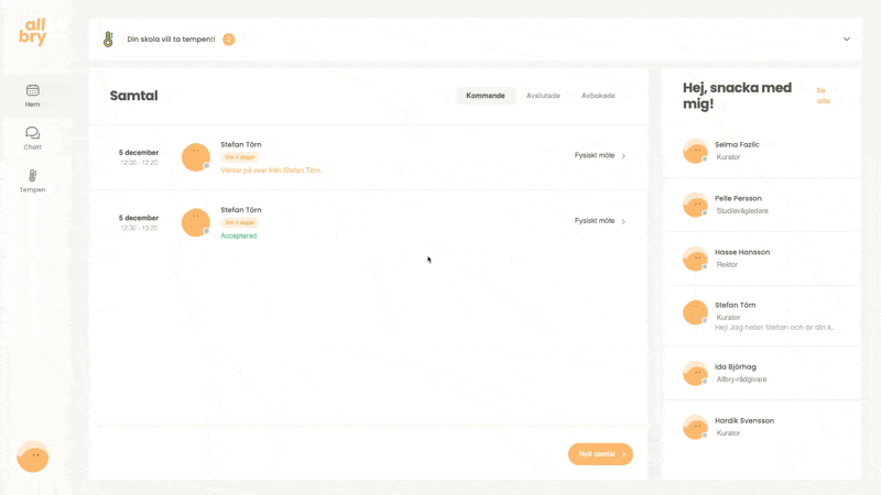 I Allbry kan du enkelt boka samtal med personal på skolan när du behöver prata med någon. Det kan vara till exempel: